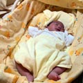 黄色のラインが入った短肌着を着ている竜麻は、このところ顔をひっかくので黄色のミトンをつけているんだけど、昼寝させようとクーハン(黄色)に放り込んで布団代わりの黄色のタオルをかけたら、黄色まみれで思わず爆笑。