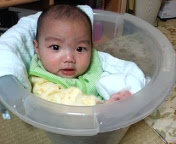 先々週の「あるある大事典II」で、海外の情報として、紹介されていた「タミータブ」というバケツが届いた。見た目はただのバケツみたいなんだけど、これに赤ちゃんを入れてお風呂のように使うらしい。ママのおなかの中のようなのでリラックスして夜泣きがおさまったりしたという…