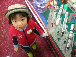 玩具売り場で、目につく物を片っ端からおねだり中。